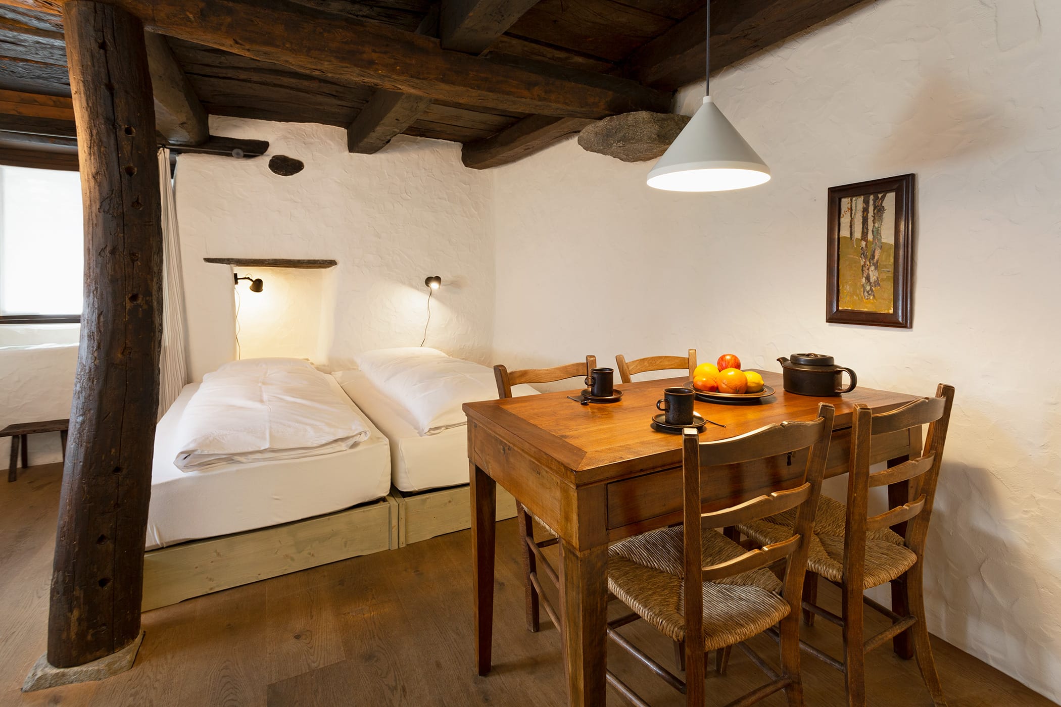 Ninfea ist eine ebenerdige Wohnung (ca. 25qm) mit offener Küche. Geniessen Sie den wunderbaren Blick gen Süden vom attraktiven Aussensitzplatz.