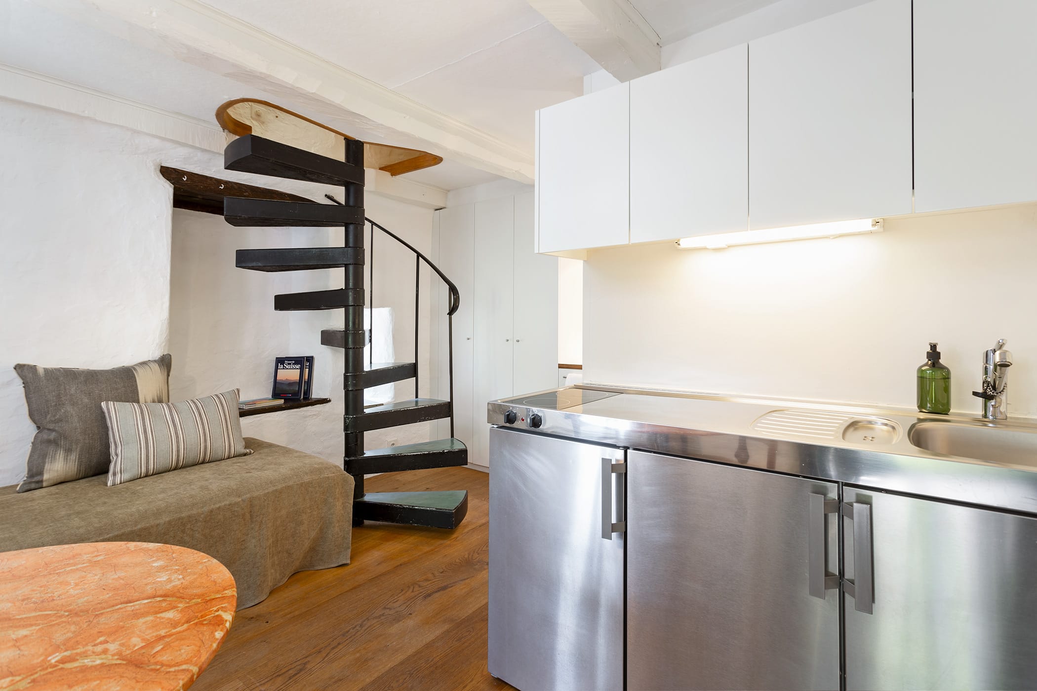 Stella ist ein helles, elegantes Studio (ca. 25qm) auf 2 Etagen mit Kochnische und Eckbalkon.